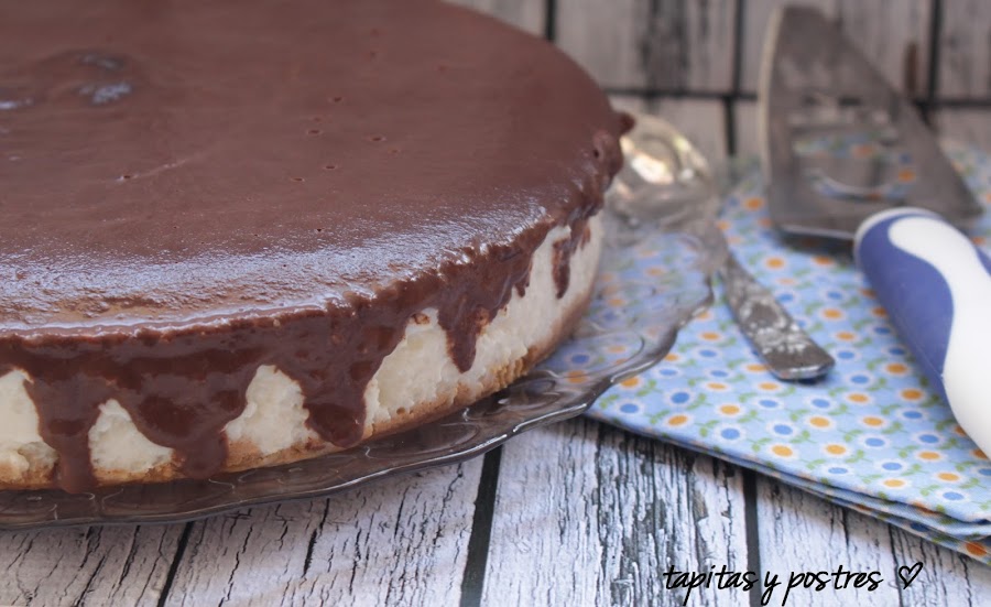 Dejamos que temple un poco y lo vertemos sobre la tarta. Dejamos enfriar y a la nevera.