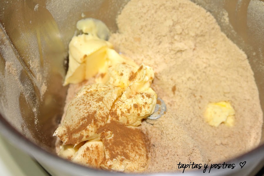 Echamos la mantequilla y la canela y mezclamos con las galletas, 20 segundos a velocidad 4.