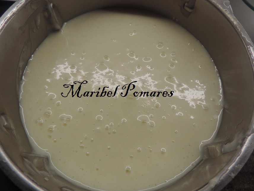 Lo ponemos en el molde con las galletas. Lo metemos al frigorífico hasta que esté bien cuajado, si es de un día para otro mejor.