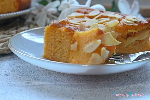 Esta tarta es una delicia, suave, dulce en su punto justo y super jugosa. Además no lleva lácteos ni harina por lo que es apta para celíacos e intolerantes a la proteína de la leche.