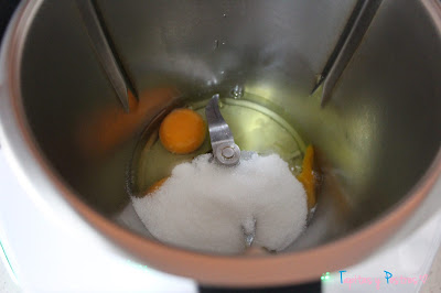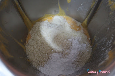 Incorporamos la harina de almendra y la levadura y mezclamos de nuevo 30 segundos a velocidad 4.