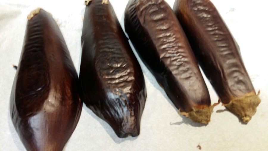 Trituramos la berenjena y reservamos.