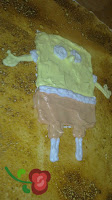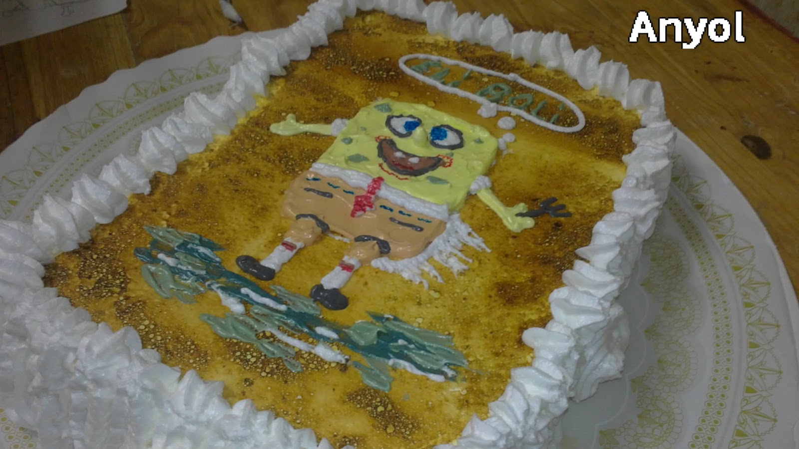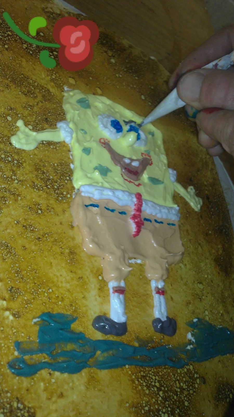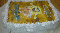EL dibujo de Bob Esponja lo hizo mi marido, y la tarta, obra mia.