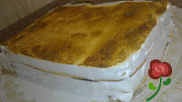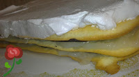 Llena una manga pastelera con la masa y haz 3 planchas. (Habras dibujado previamente en papel sulfurizado 3 rectangulos con la medidas 21x27 cm.)...