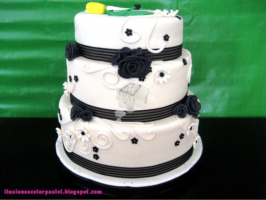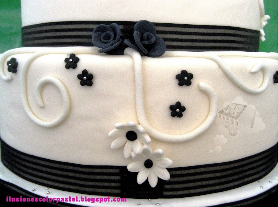 Unos días antes Vicente, el novio, se puso en contacto conmigo... "No tenemos tarta, la finca sirve postre y quiero sorprender a Rocio con una tarta dedicada a ella para que tengamos el momento corte, que sea en blanco y negro, igual que nuestro postre y si puedes añadirle un toque muy especial... una nota con una frase que quiero dedicarle a mi novia, y un tulipán amarillo, su flor favorita".
