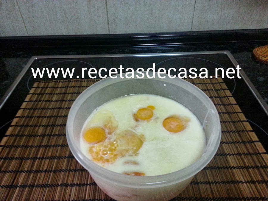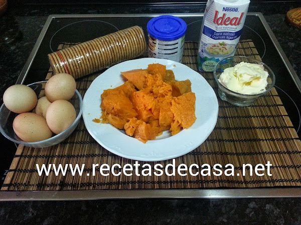 En un bol, ponemos los demás el boniato hervido y cortado, la leche condensada, la leche evaporada, los huevos y un poquito de canela.