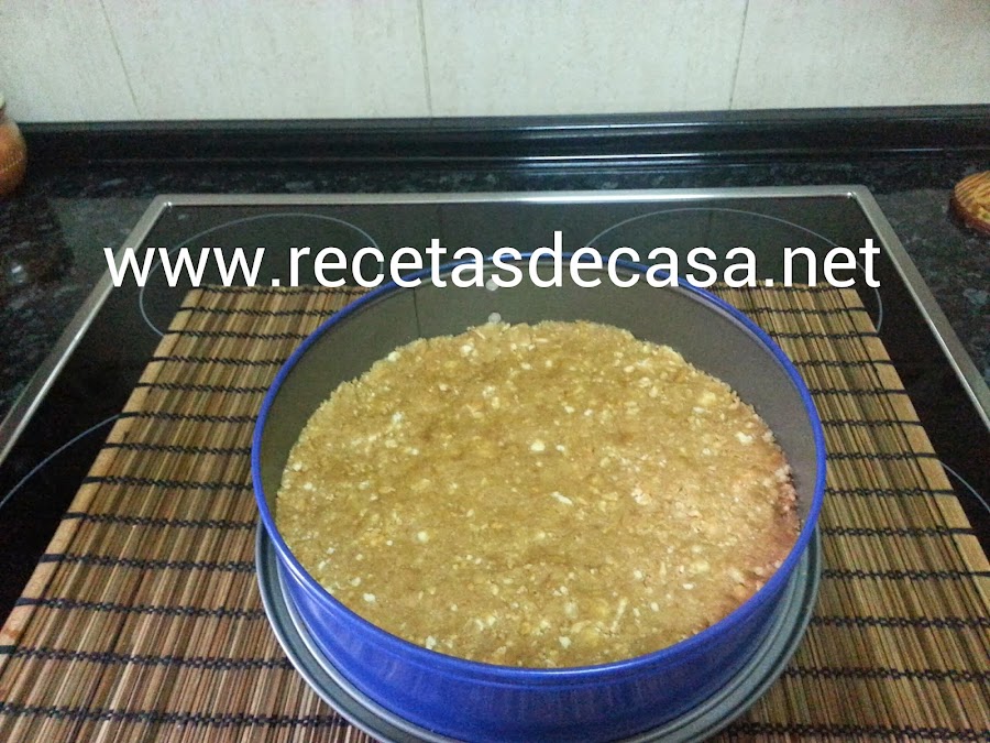 Cubrimos la base de un molde desmontable con la mezcla que nos servirá de base de la tarta.