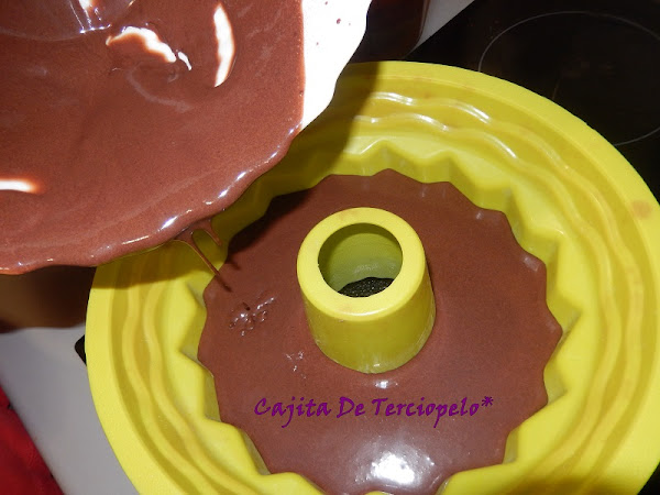 Vertemos la mezcla en un molde y lo ponemos al horno precalentado a 180ºC durante 50 minutos. Aunque veamos que al sacarlo, la mezcla tiembla un poco, luego al enfriarse, terminará de cuajar. Meterla a la nevera.