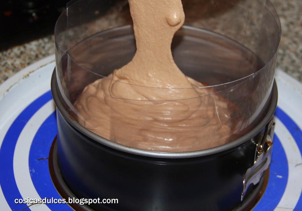 Por último vertemos el resto de mousse y dejamos enfriar en la nevera (mejor de un día para otro).