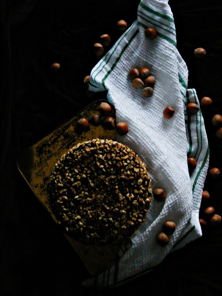 Finalmente, decoramos la tarta con avellanas tostadas y picadas.