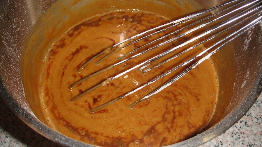 Por otro lado, mezclamos el azúcar, el aceite y los huevos uno a uno con ayuda de unas varillas.