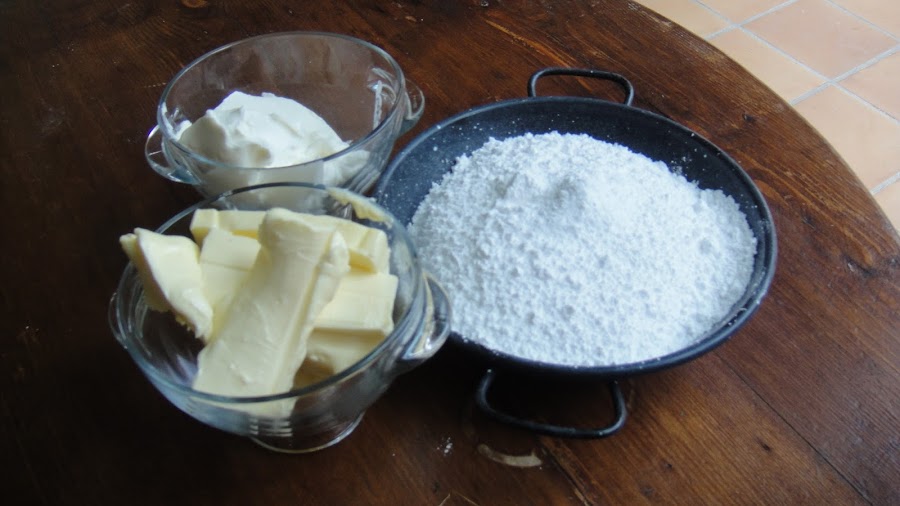 El relleno es sencillo, batimos la mantequilla a temperatura ambiente junto con el azúcar y el queso recién sacado de la nevera, cuando tengamos la consistencia deseada (de crema) lo metemos en una manga pastelera.