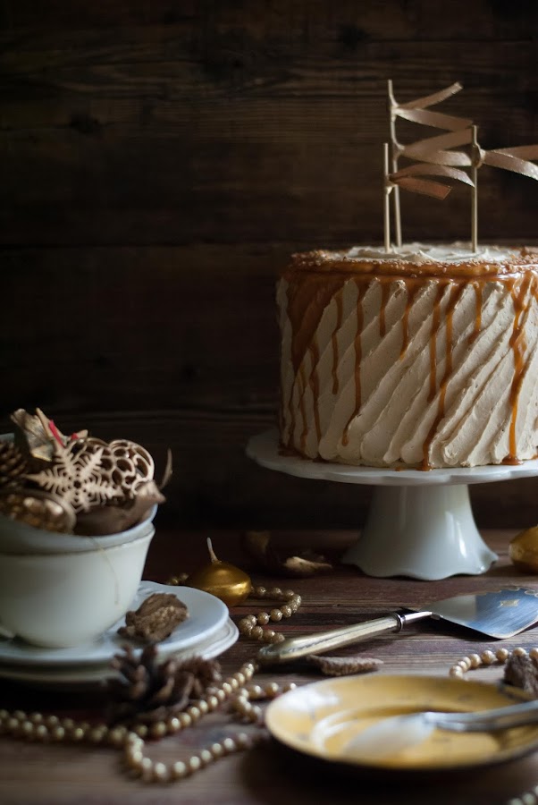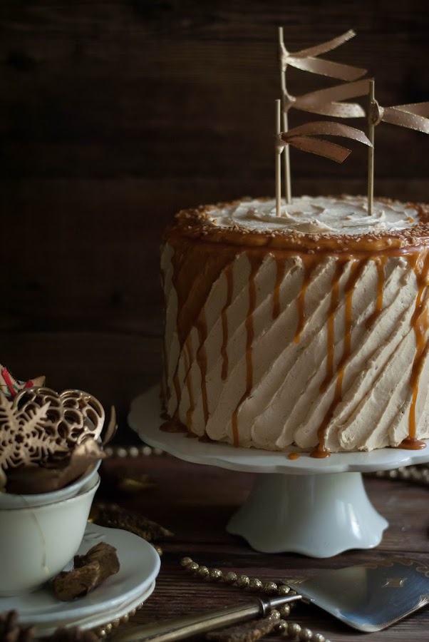 He usado la misma receta que para los Pumpkin Cupcakes, sólo que doblé la receta, pero claro me ha salido una tarta muy grande de 4 capas de 20cm de diámetro.
