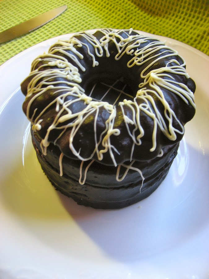 5º " De la misma manera le echaremos chocolate a la otra parte de la tarta, la cual colocaremos encima y acabaremos decorándola con unos hilos de chocolate blanco. Claro que esta es una manera y la podríamos decorar de mil maneras diferentes, pero os lo dejo a vuestra imaginación.