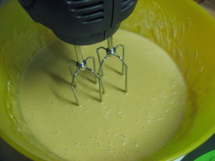 5º " Le añadimos la harina también poco a poco, para que quede bien integrada, (Yo la echo en tres veces, más o menos).