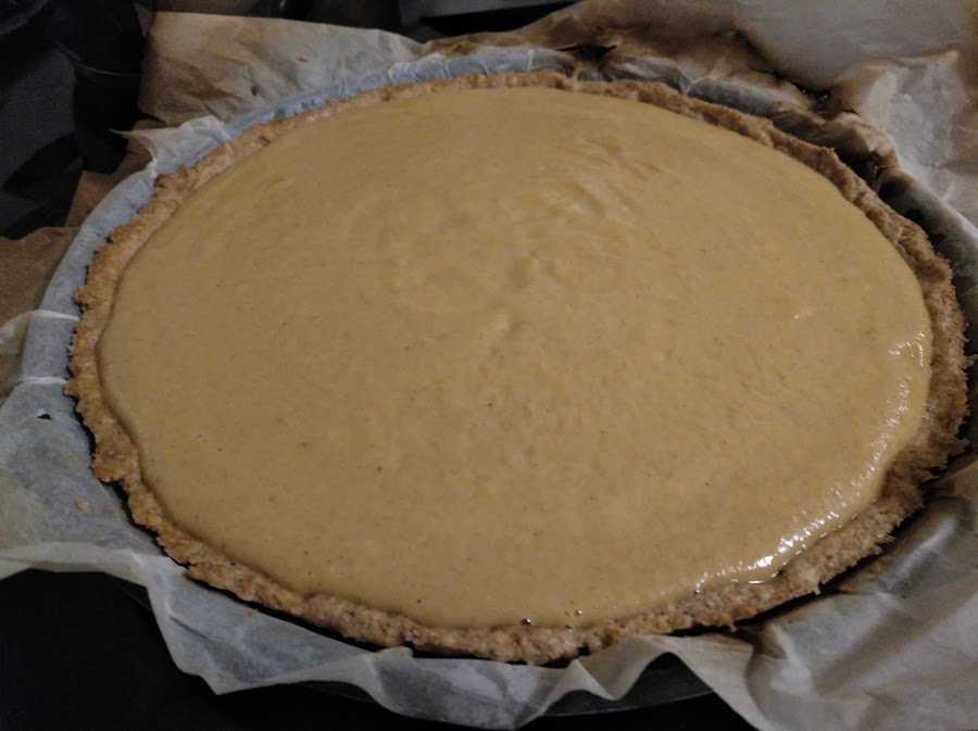 Formamos, entonces, una circunferencia con la masa y cubrimos con ella el molde. Para poder sacarla mejor, recomiendo poner un papel de horno en el molde.