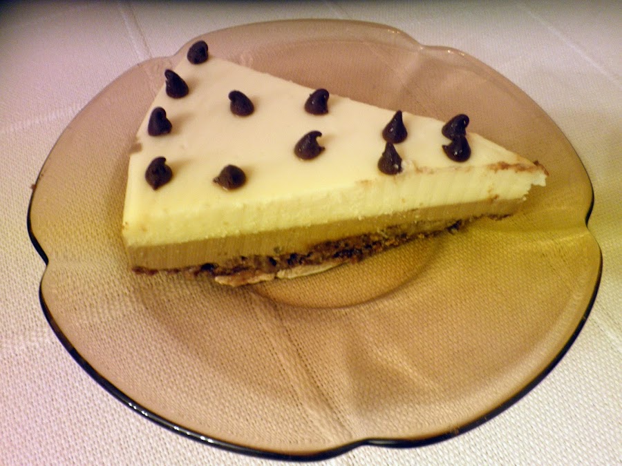 Raquel en su blog comenta que esta tarta es improvisada. Pues para ser así le salió excelente, me encantó la mezcla de sabores de las tres bases, la de galletas príncipe, de chocolate blanco y de capuchino.