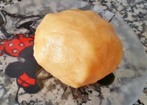 - Dividimos la masa en dos partes, una mayor que otra, y estíralas con el rodillo.