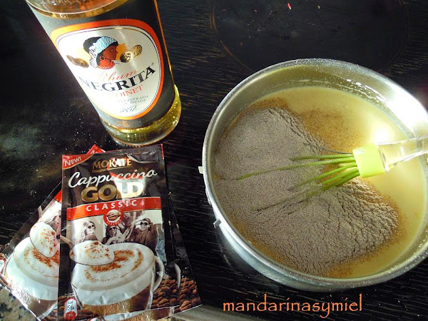 Añade el ron y los sobres de capuchino, remueve hasta que se disuelvan.