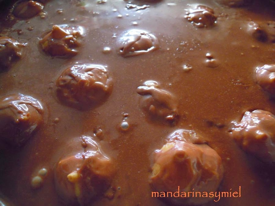 También he cambiado el coñac por ron negro que me gusta más, lo demás es todo igual. Te pongo los ingredientes originales, y los que yo he puesto, los pongo entre paréntesis.