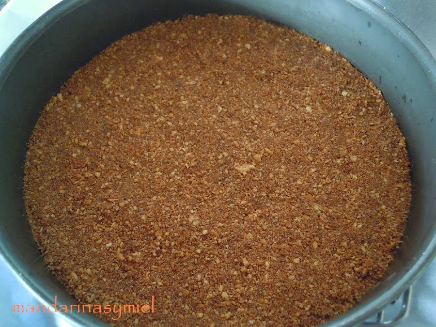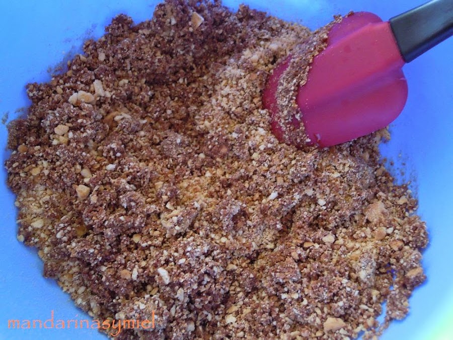 Tritura bien las galletas y mezcla con la mantequilla y el chocolate fundidos.