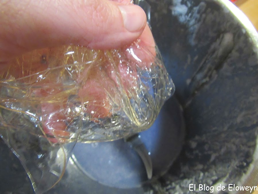 Como podéis ver, con la lámina de acetato es muy fácil de desmoldar. A continuación, quitamos la lámina de acetato poco a poco.