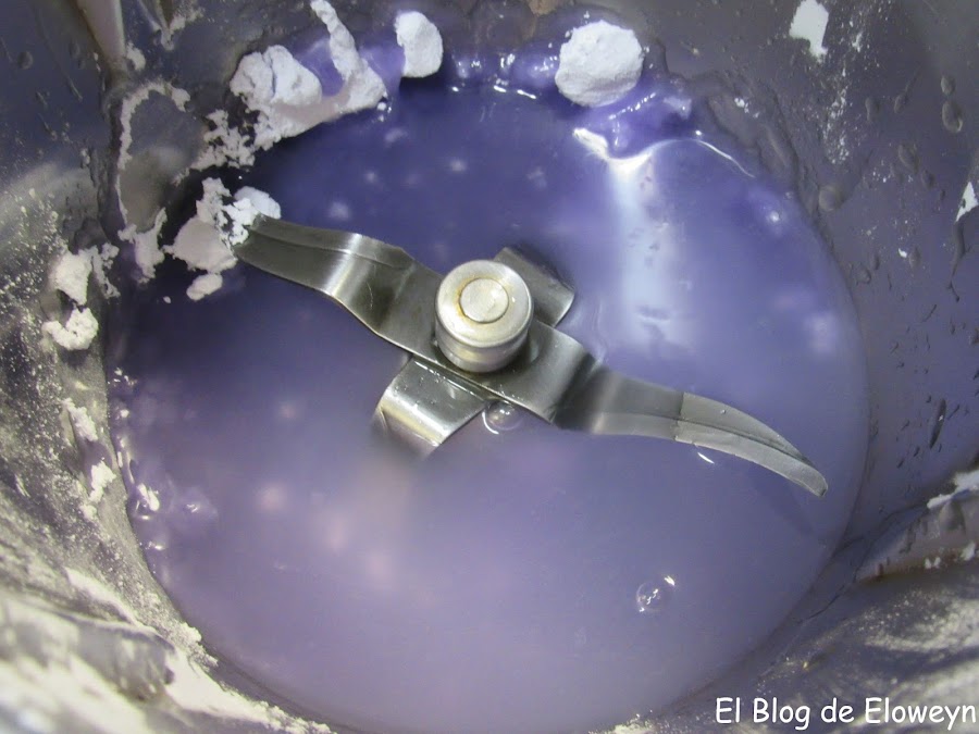 Añadimos los caramelos de violeta que habíamos pulverizado antes y que teníamos reservados.