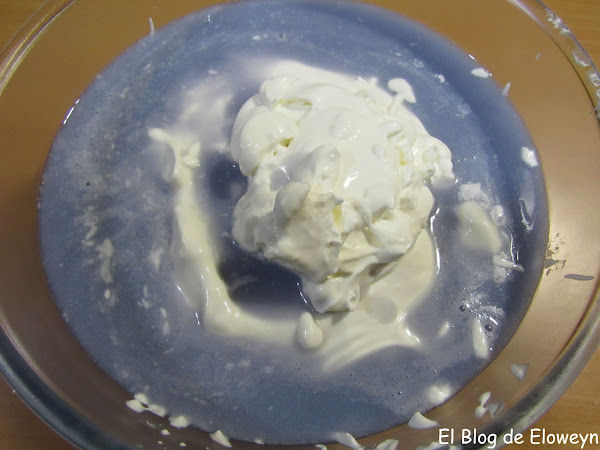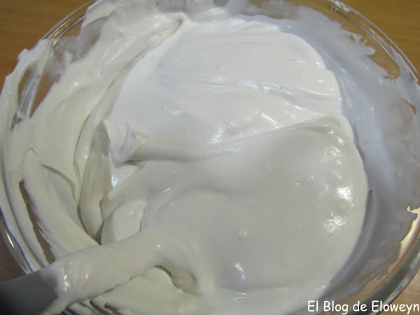 Lo mezclamos todo con una espátula y con movimientos envolventes, para que no se baje la nata (crema de leche).