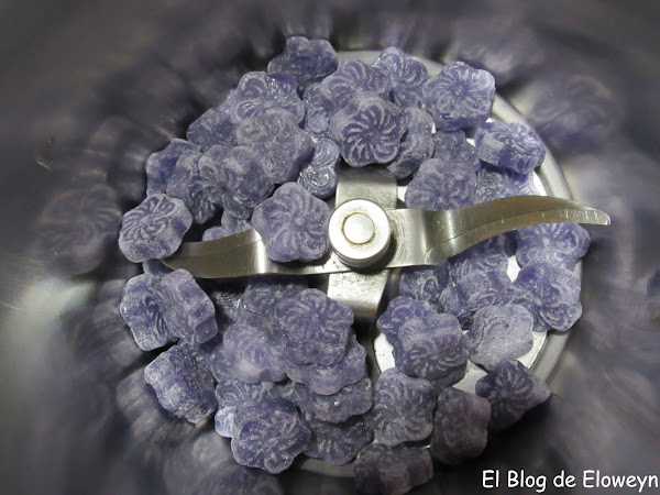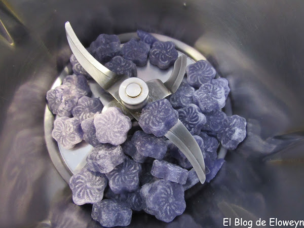A continuación, ponemos los 150 gramos de caramelos de violeta en el vaso de la Thermomix.