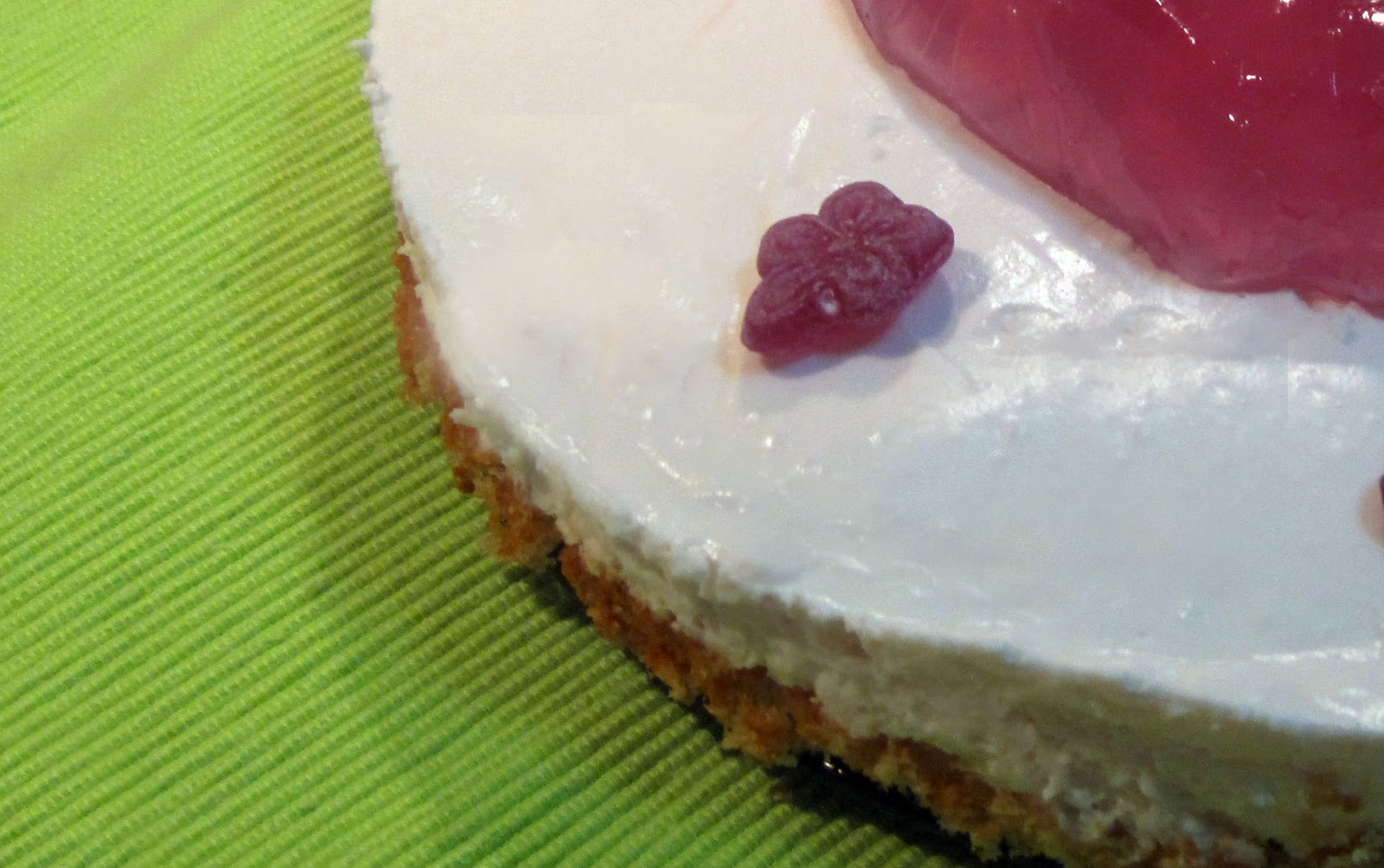 Una vez que la mousse este cuajada, verter por encima la gelatina de violetas y volver a poner en la nevera.