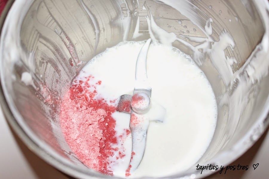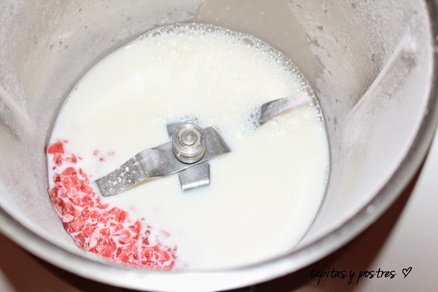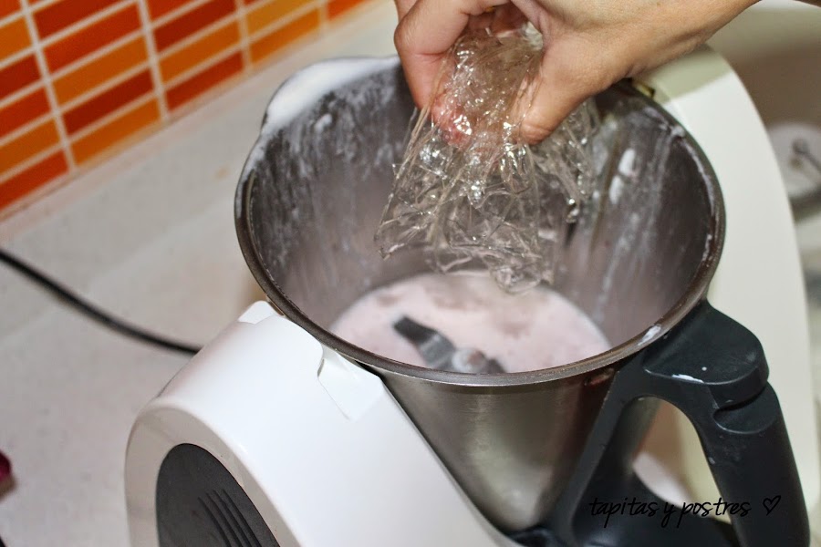Triturar los caramelos pikotas 20 segundos a velocidad 5-7-10. Reservamos.