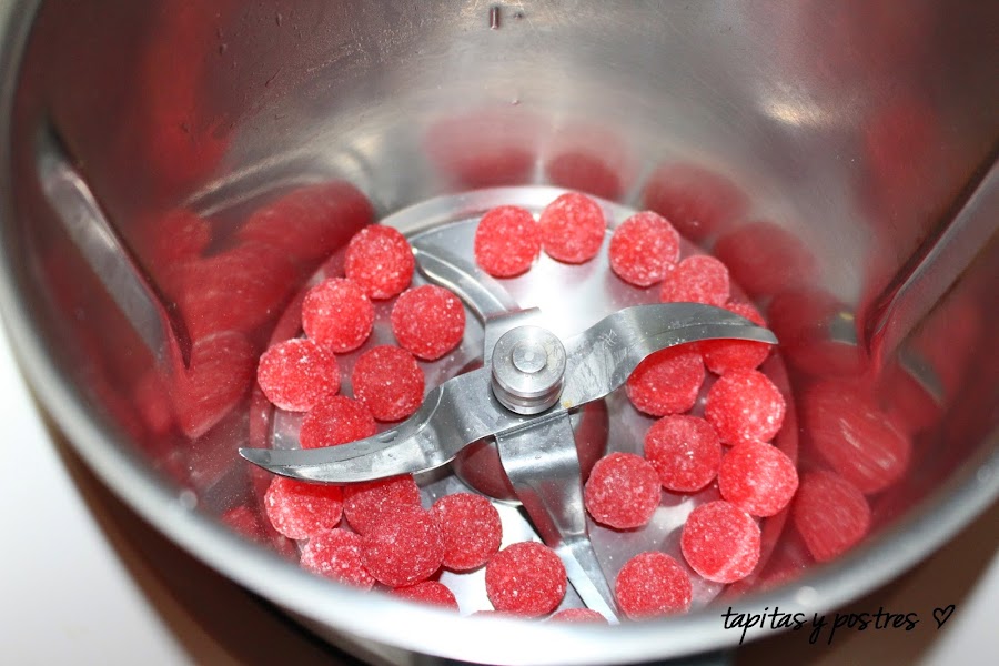 Ahora vamos con el relleno. Primeros trituramos los caramelos.