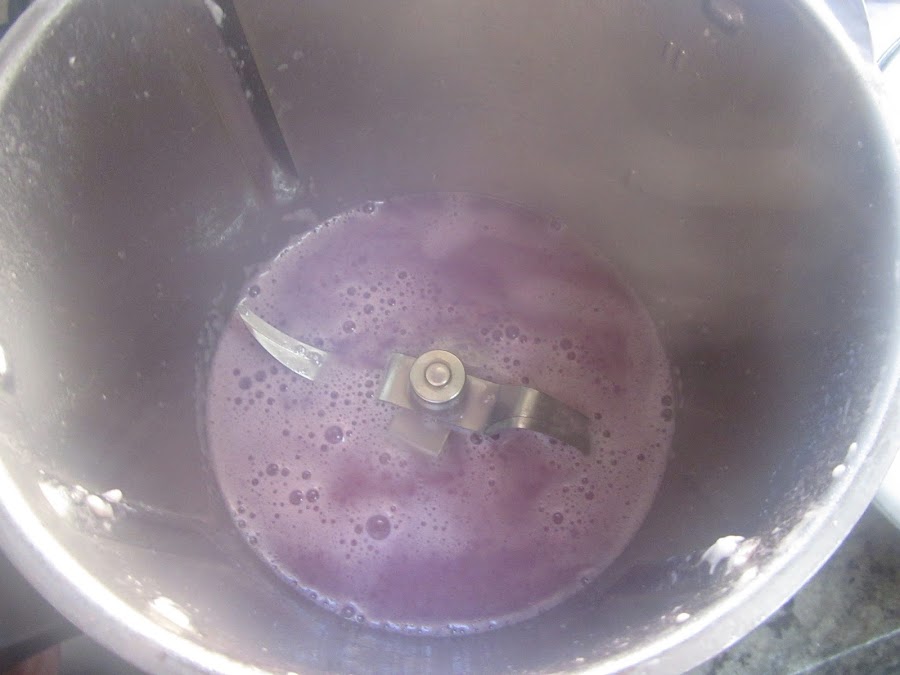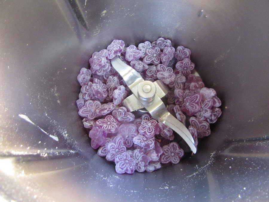 1- Triturar los caramelos violetas, 20 seg. vel.5-7-10. Reservar.