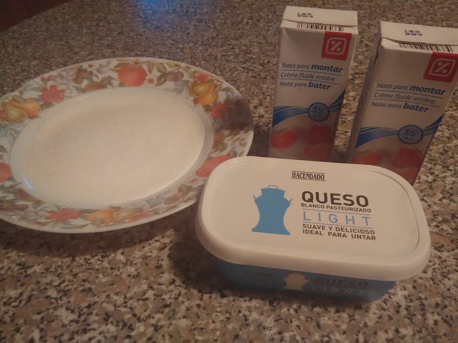 COBERTURAMezclamos el queso crema, el azúcar y la nata (crema de leche), y batimos hasta que la masa tiene un aspecto consistente, como el de la foto inferior. No os preocupéis si os parece que la masa no parece demasiado espesa, es así, al añadirle filadelfia a la nata (crema de leche), esta pierde un poco de cuerpo final, pero veréis que después de tener la tarta en reposo en la nevera, la cobertura se endurece y adquiere una textura similar a la de una mouse.