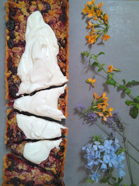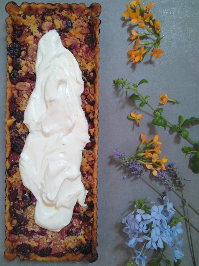 En caso de que nos haya sobrado masa sablée, hacemos migas y cubrimos la tarta con ellas.