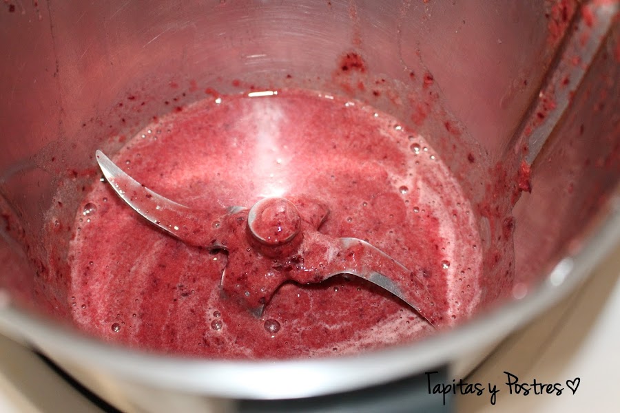 Ahora vamos a deshuesar las cerezas, es una tarea tediosa si no queremos destrozar la fruta con un cuchillo. Pero yo vi una vez un truco para deshuesarlas y funciona. Consiste en introducir una pajita o cañita por el culete de la cereza y empujar. El hueso saldrá por la parte de arriba y la cereza no se "destroza" del todo. Y vosotros diréis, que qué mas da que se destroce la cereza si la vamos a triturar.. pues llevais razón, pero para preparaciones donde queramos tener las cerezas más o menos enteras, este truco nos sirve.