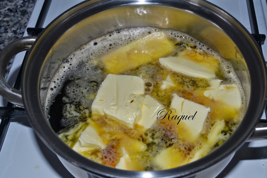 Ponemos a calentar en un cazo la mantequilla con la cerveza sin que llegue a hervir, añadimos el cacao y removemos bien, que no queden grumos.