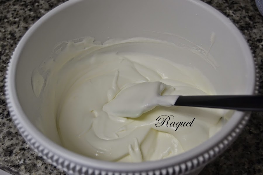 Preparamos la crema para encima, Batimos bien el queso con la azúcar glass y reservamos.