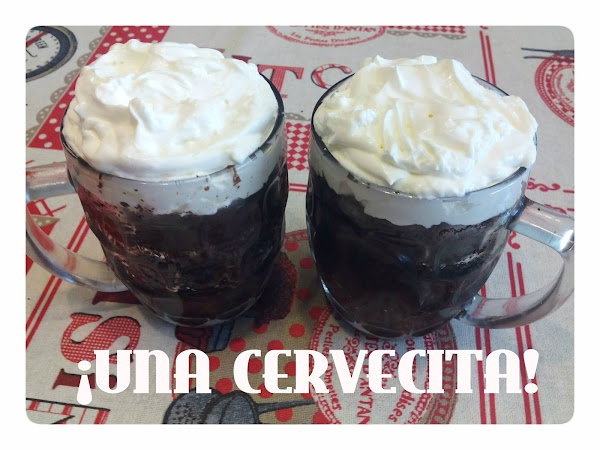 Verter la cerveza en una ollita y calentar unos minutos a fuego medio para que se consuma el alcohol,después añadir la mantequilla,removiendo de vez en cuando hasta que se disuelva bien la mantequilla en la cerveza.Apartar del fuego la mezcla y dejar templar.Batir los huevos con el azúcar y seguidamente añadir la vainilla,la nata (crema de leche) y la cerveza a medida que vamos batiendo.Tamizar en un bol grande el cacao,la harina,y el bicarbonato e Incoorporar poco a poco a la mezcla de huevos sin dejar de batir hasta que se forme una mezcla homogénea y sin grumos.Untar las jarritas de cerveza con aceite de girasol y verter la mezcla en las jarritas hasta llenar los 3/4 de las jarras.Poner en una bandeja honda con dos o 3 dedos de agua caliente y hornear al baño maría a 175ºC aproximadamente durante 30 minutos,una vez pasado ese tiempo comprobar si esta cocida y dejar enfriar.