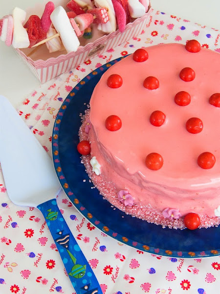 El pasado 12 de julio mi hija Carmen cumplió 12 años. Como ya es tradicción celebramos una merienda con sus amigas en casa. Preparé varias cosas con la ayuda de mi hija, hicimos Cake Pops de Oreo, Huesitos y como fin de fiesta esta Tarta con sabor a chicle, deseo de la peque de la casa ( lo de peque es un decir, la nena ya casi me ha pasado en altura).