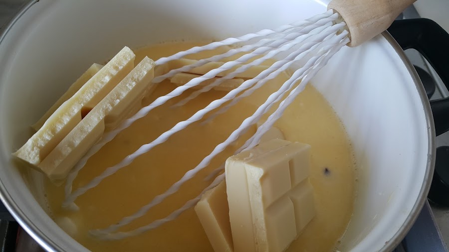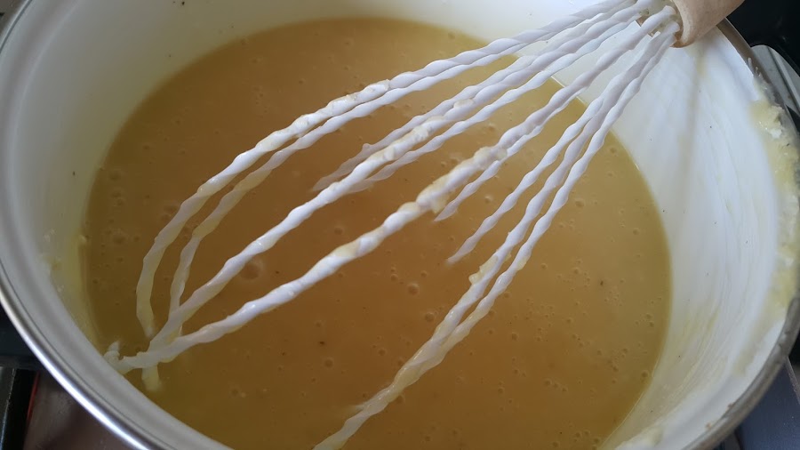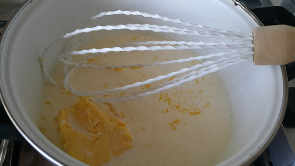 Separamos del fuego y añadimos el chocolate blanco hasta que se derrita por completo. Si es necesario acercar al fuego de vez en cuando.