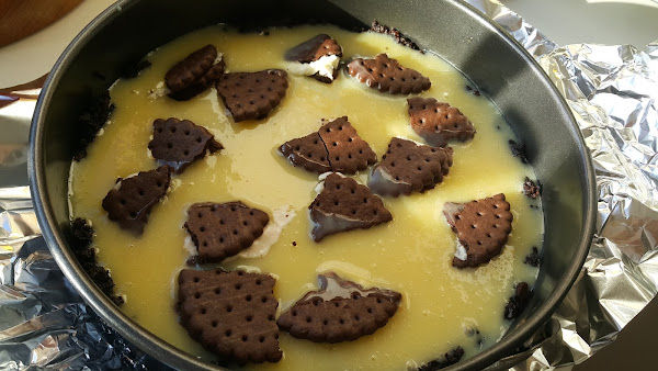 Decoramos con 4-6 galletas partidas por encima y dejamos en la nevera toda la noche.