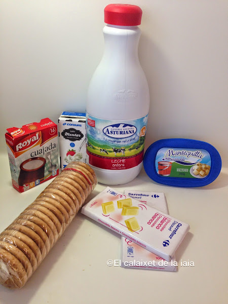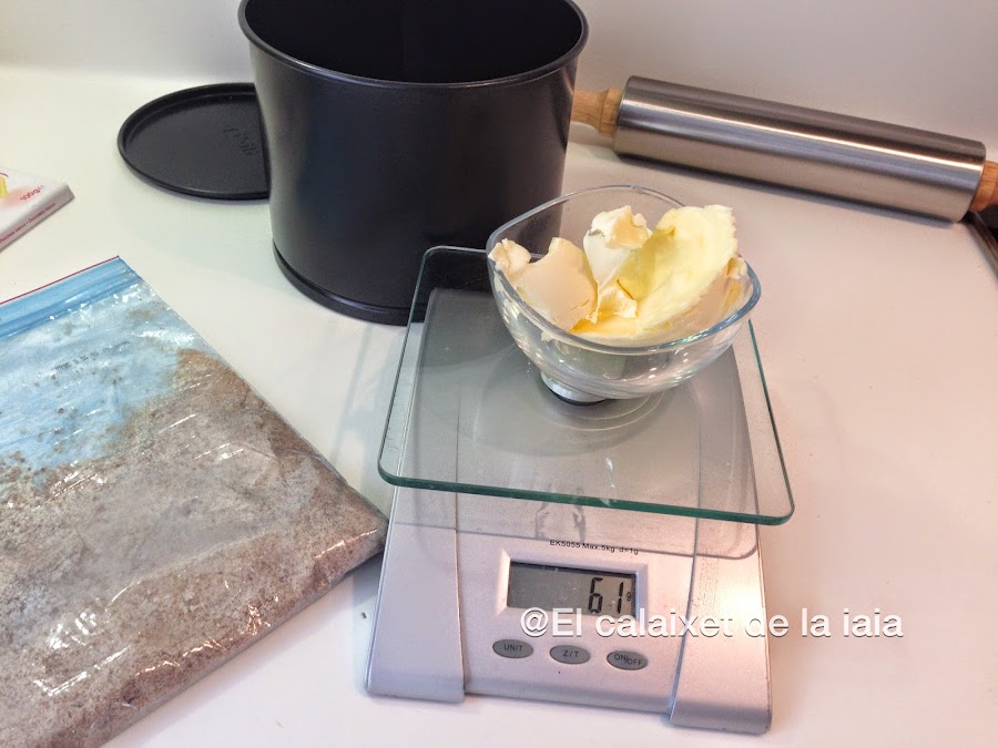 Hoy he utilizado un molde mas pequeño, de tan solo 15 cm. porque solo íbamos a comer tarta 3 personas y solo he usado medio rulo de galletas, si usáis un molde mas grande, poner el rulo completo y doblad el resto de ingredientes, aún así ha sobrado un trozo, pensad que ésta tarta llena mucho.