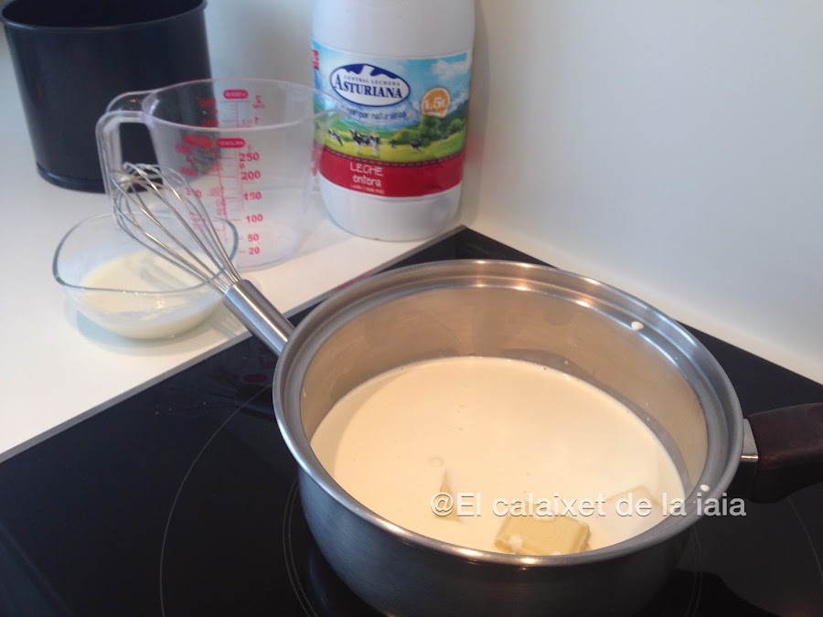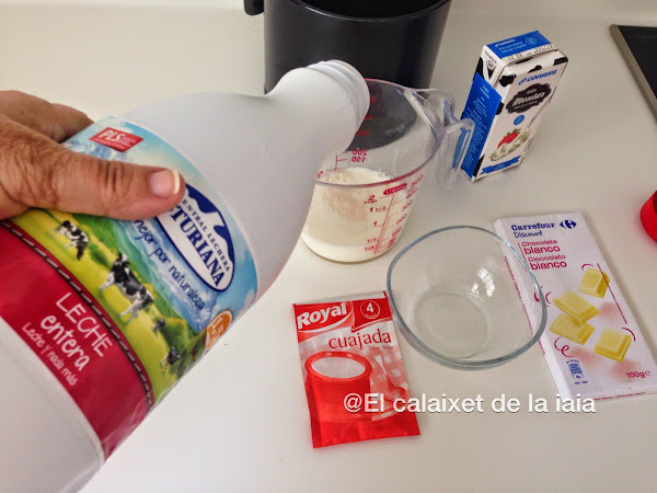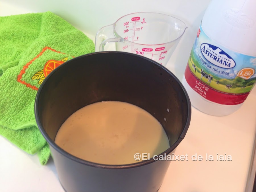 Apartamos un poco de leche y deshacemos en ella un sobre de cuajada procurando que no queden grumos