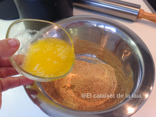 la derretimos en el micro y formamos una masa con la galleta picada