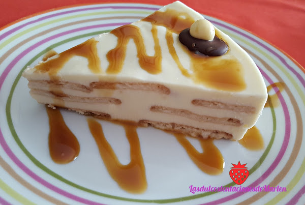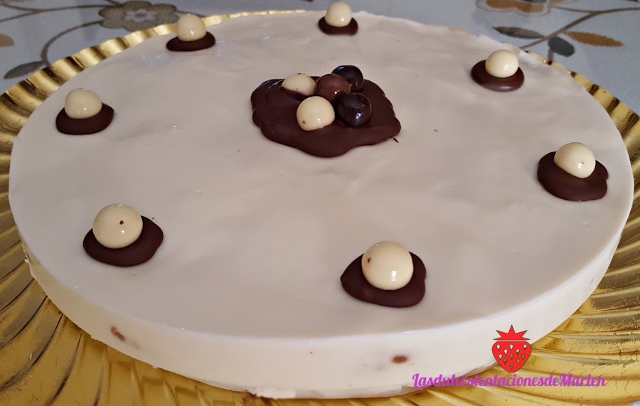 Desmoldamos la tarta con cuidado y la decoramos con chocolate, bolitas de chocolate y Tooffe de caramelo... Y lista para disfrutarla.