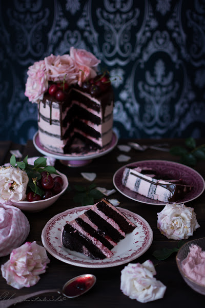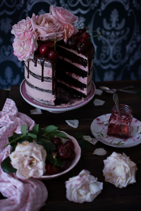 Esta delicia de tarta con su chocolate y sus cerezas, las primeras de la temporada, la hice para celebrar mi cumpleaños.