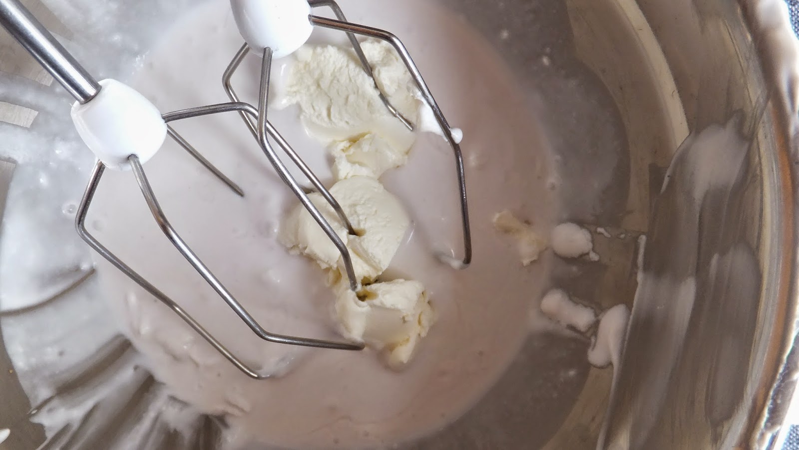12. Añade el queso crema y bate a velocidad media baja hasta que comience a montar.