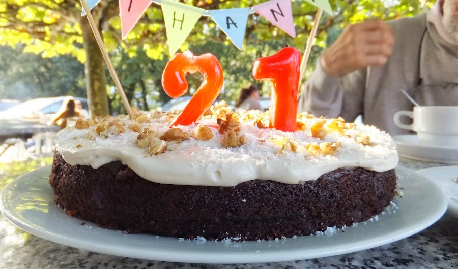 14. Esparce la crema de coco sobre el pastel ya frío con una espátula o un cuchillo y conserva la tarta en la nevera hasta su consumo.