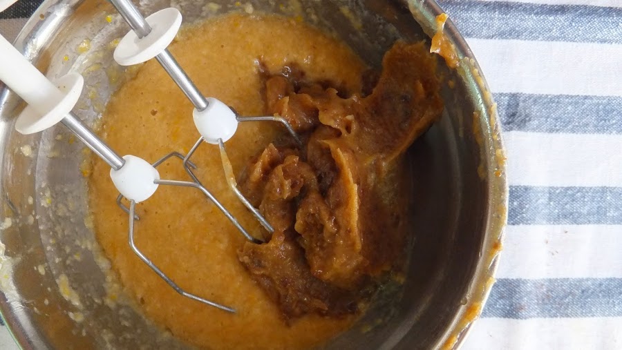 7. Añade el pure la crema de datil. Mezcla todo bien hasta formar una masa homogenea.